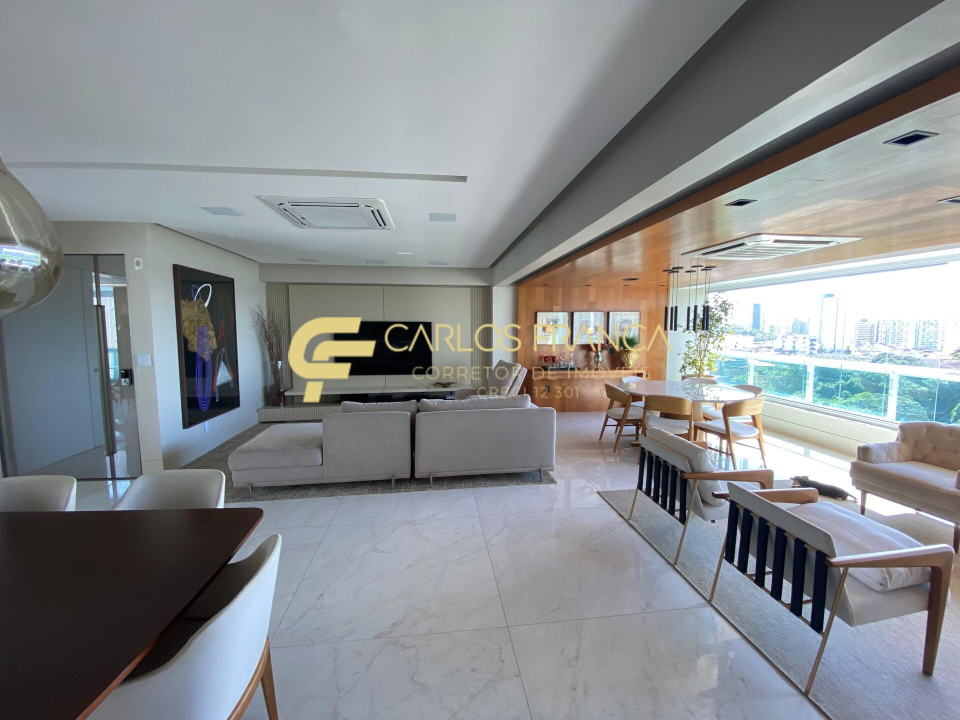 Sala de estar e jantar integrada à varanda gourmet